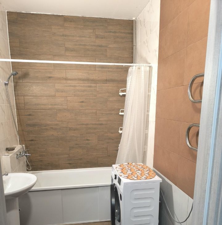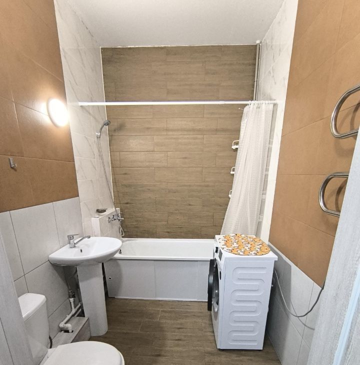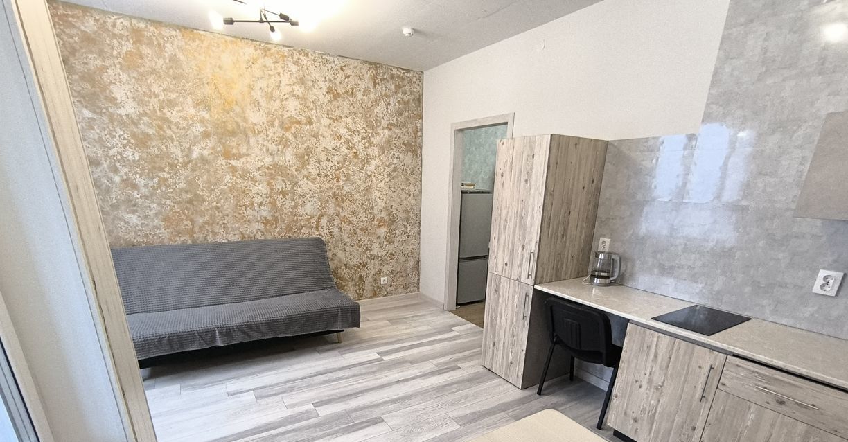 В квартире есть всё необходимое для комфортного проживания: современная мебель в комнате и на кухне, а также бытовая техника — холодильник и стиральная машина, индукционная плита на кухне,чайник.