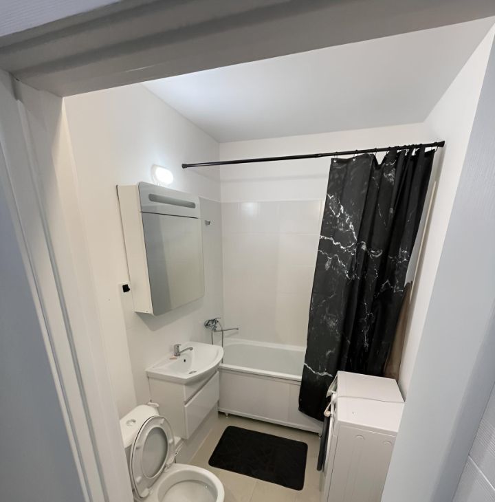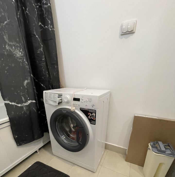 В квартире есть все необходимое для комфортного проживания: на кухне и в комнате установлена мебель, в наличии холодильник, телевизор и стиральная машина. Санузел совмещённый и оборудован ванной. В доме есть пандус, мусоропровод, а также два пассажирских и один грузовой лифт, поэтому можно легко перемещаться с покупками и багажом.