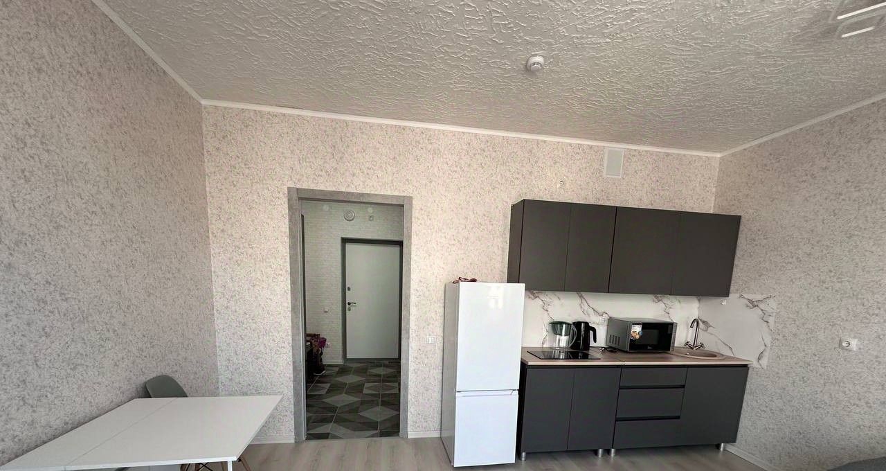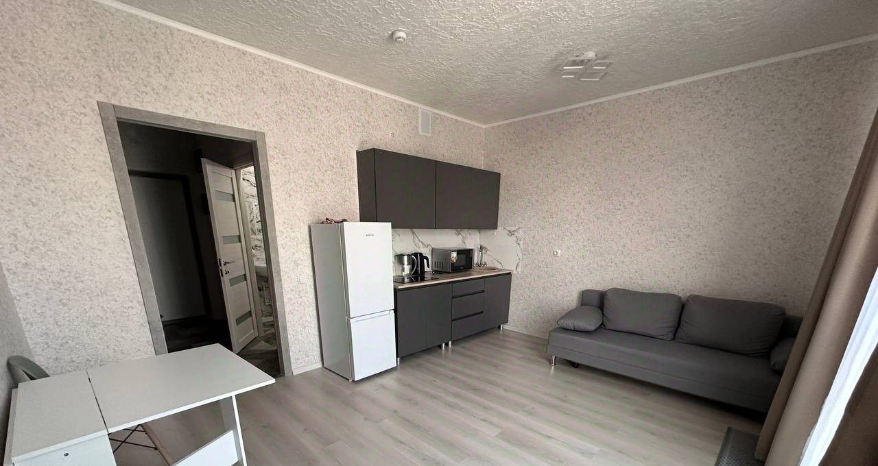 Квартира полностью меблирована, в комнате и на кухне есть вся необходимая мебель для комфортного проживания. В кухне установлены холодильник, плита и микроволновая печь. Есть стиральная машина.