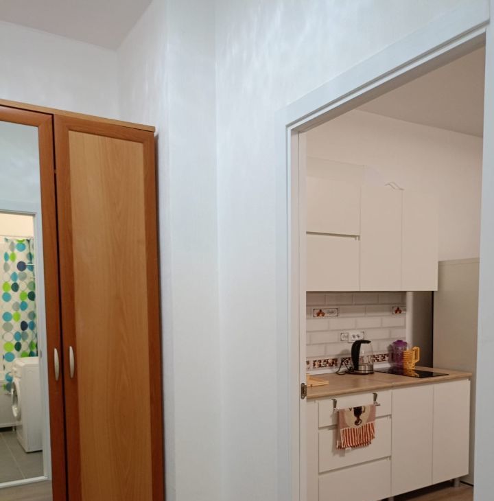 В студии выполнен косметический ремонт, что создает приятную атмосферу для жизни. В квартире есть все необходимые удобства для комфортного проживания: просторная кухня площадью 8,6 кв. м, жилая зона 10,5 кв. м и окна, выходящие во двор, обеспечивающие тишину и уединение. Высота потолков составляет 2,7 метра, что добавляет ощущение пространства.