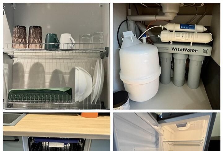 Всё для быта: Встроенная кухня с индукционной панелью, посудомоечная и стиральная машины, холодильник, микроволновка, чайник.