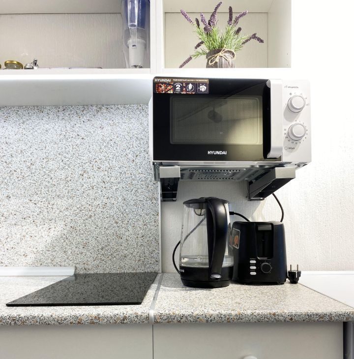 "Заезжай и живи" - кухонный гарнитур (варочная панель, холодильник, микроволновая печь, тостер, телевизор), столы стулья, раскладываемый диван + доп. спальное место в виде раскладушки с матрацем, есть сейф, а так же посуда и столовые приборы