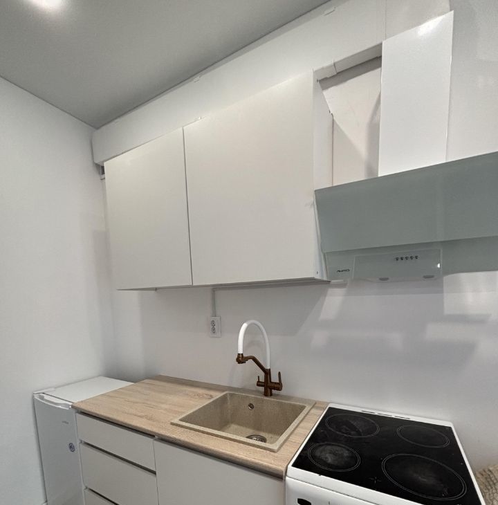 Срочно продаю уютную новую квартиру-студию. Комната поделена на 2 части (спальня и кухня , в данный момент доделываются работы по монтажу конструкции -формирующей 2 помещения).