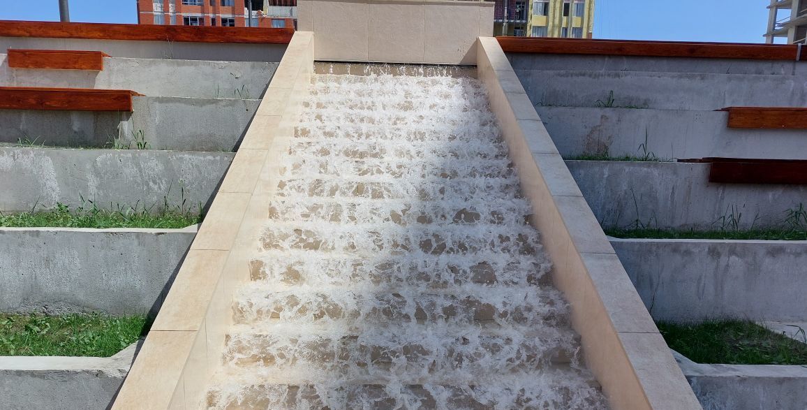 Новый жилой комплекс МЕЛЬНИЦА, охрана, большой двор с беговыми дорожками, тренажерами, игровыми площадками, амфитеатром с фонтаном.