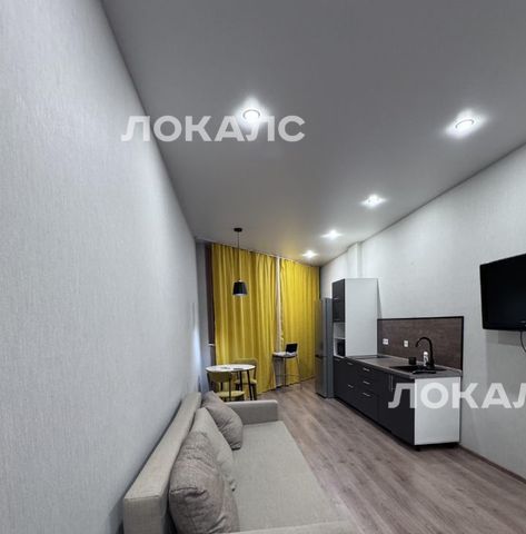 В квартире выполнен евроремонт, что придаёт ей современный и стильный вид. Комната обставлена мебелью, а компактная кухня площадью 5 кв. м оснащена необходимой техникой, включая холодильник и стиральную машину. Ванная комната оборудована ванной, что позволяет расслабиться после долгого дня. Удобная планировка студии делает её отличным вариантом для комфортного проживания.