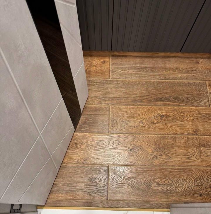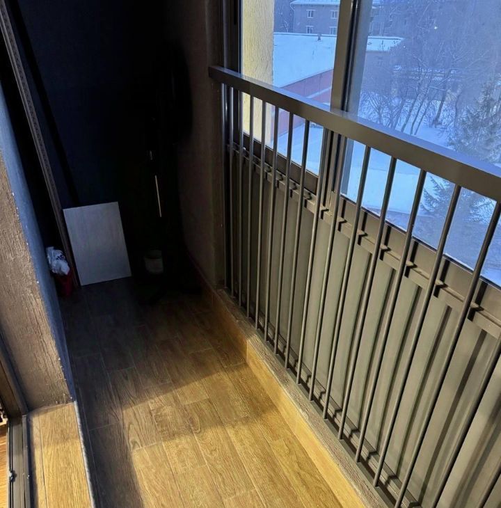 Просторная лоджия выложена плиткой.