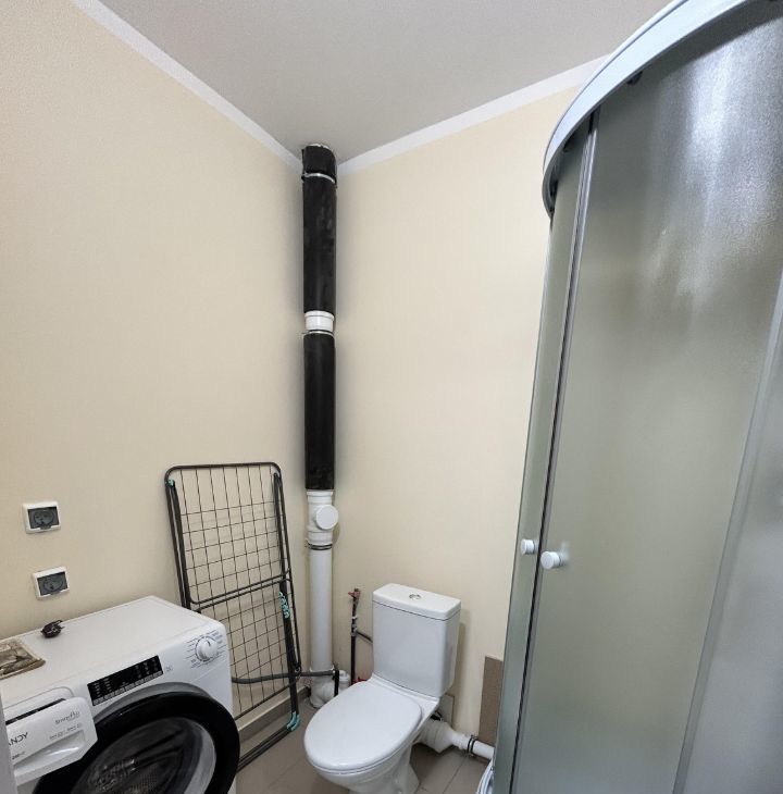 Есть всё необходимое для комфортного проживания: в ванной: душевая кабина, стиральная машина, шкафчик, сушка для белья раскладная; в комнате: диван двуспальный, шкаф вместительный, кухонный гарнитур с холодильником, варочной поверхностью, чайником, стол обеденный с удобными стульями. Окна выходят на улицу, что обеспечивает хорошее естественное освещение.