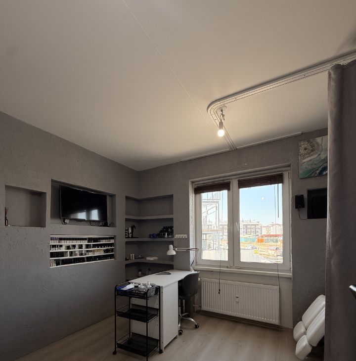 Квартира несколько лет использовалась как бьюти-пространство — здесь работали мастер маникюра и колорист. Помещение всегда содержалось в чистоте и аккуратно эксплуатировалось.