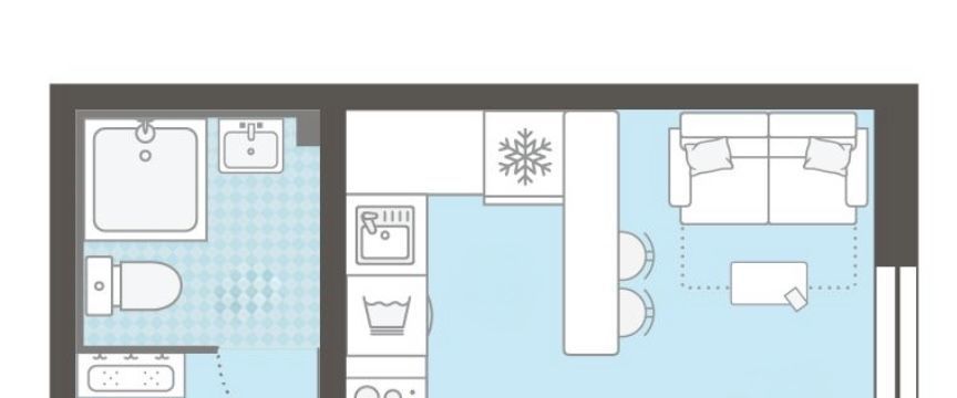 Также выведены усиленные розетки под варочную поверхность, поэтому достаточно установить кухню — и квартира становится полностью пригодной для проживания.