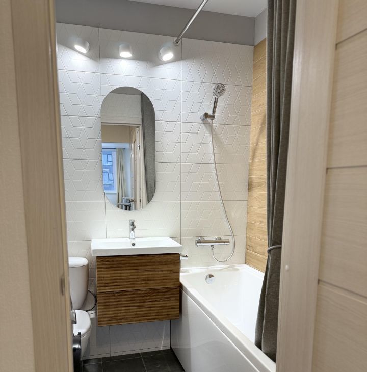 - Всё новое и для вас: Вся мебель, техника (холодильник, плита, посудомоечная машина, стиральная машина, чайник, фен, утюг) и сантехника — абсолютно новые, куплены специально для этой квартиры. Вы будете первым, кто ими воспользуется. Для удобства в квартире предусмотрено несколько мест хранения и помощник в уборке - робот-пылесос.