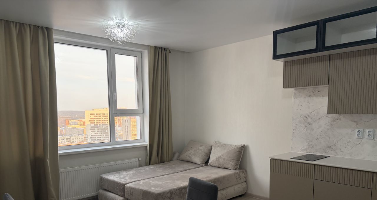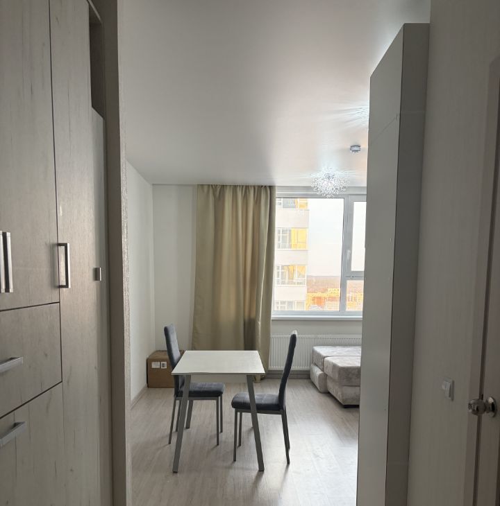 Сдается студия с панорамным видом на голубое небо и зелёный парк в новом доме в районе Южного автовокзала.
