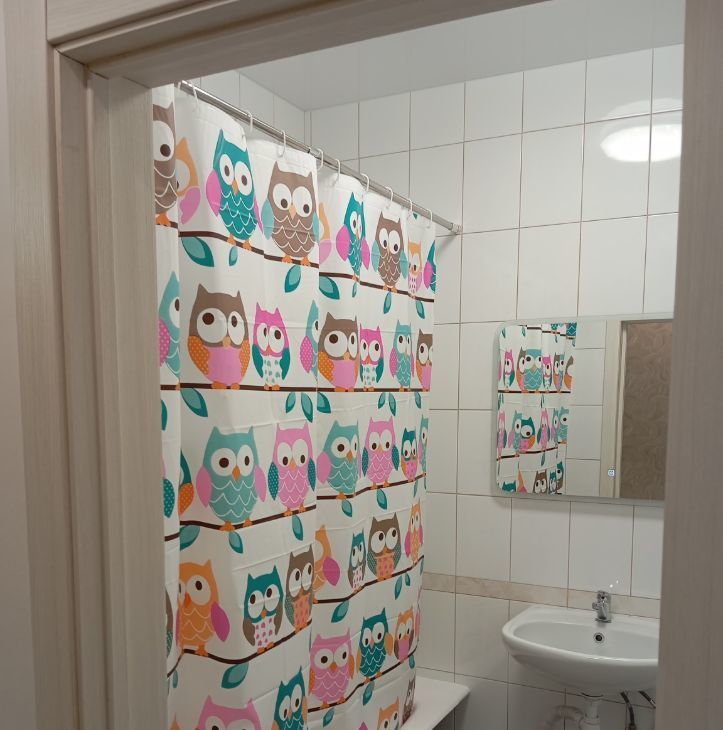 Санузел выполнен в светлых тонах и оснащен современной сантехникой. В квартире установлены шкафы для хранения вещей.