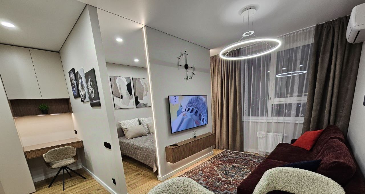 Сдаётся квартира с новым, современным ремонтом в новом доме. Полностью укомплектована всей необходимой мебелью и техникой, есть практически все для комфортного проживания. Хоть у квартиры и небольшая площадь, но она продуманная до мелочей, ну и коммунальные платежи не большие, все по счётчикам. Без детей и животных. Депозит равен ежемесячному платежу.
