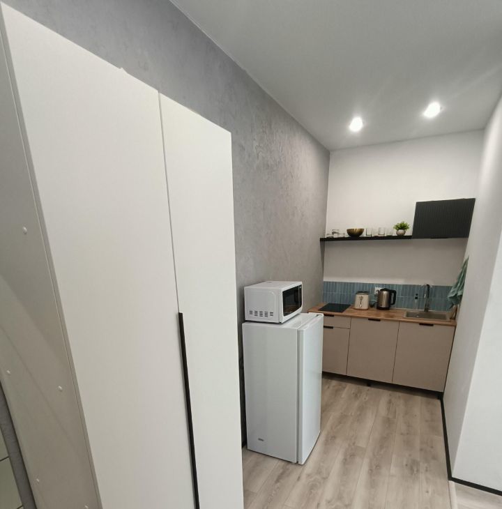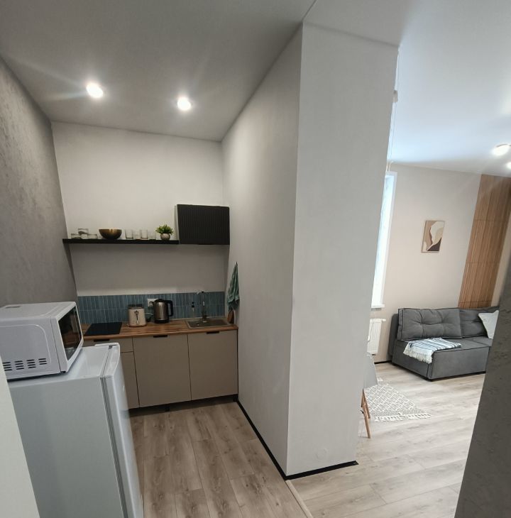 В студии имеется отдельная прихожая зона, зона кухни и комнаты с панорамным балконом и прекрасными видами.