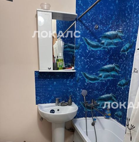 Санузел совмещенный, оформлен яркими плитками с морской тематикой. Дом оснащен двумя пассажирскими лифтами и одним грузовым, что обеспечивает удобство перемещения. Во дворе открытая парковка и детская площадка.