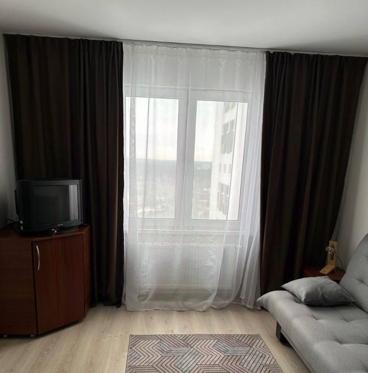 Уютная светлая студия в тихом спальном районе. Свежий воздух и чистая вода из крана, вид на лес. Транспортная доступность - автобусы. Для жизни все есть: магазины, аптеки, благоустроенный двор. Сдадим девушке без вредных привычек.