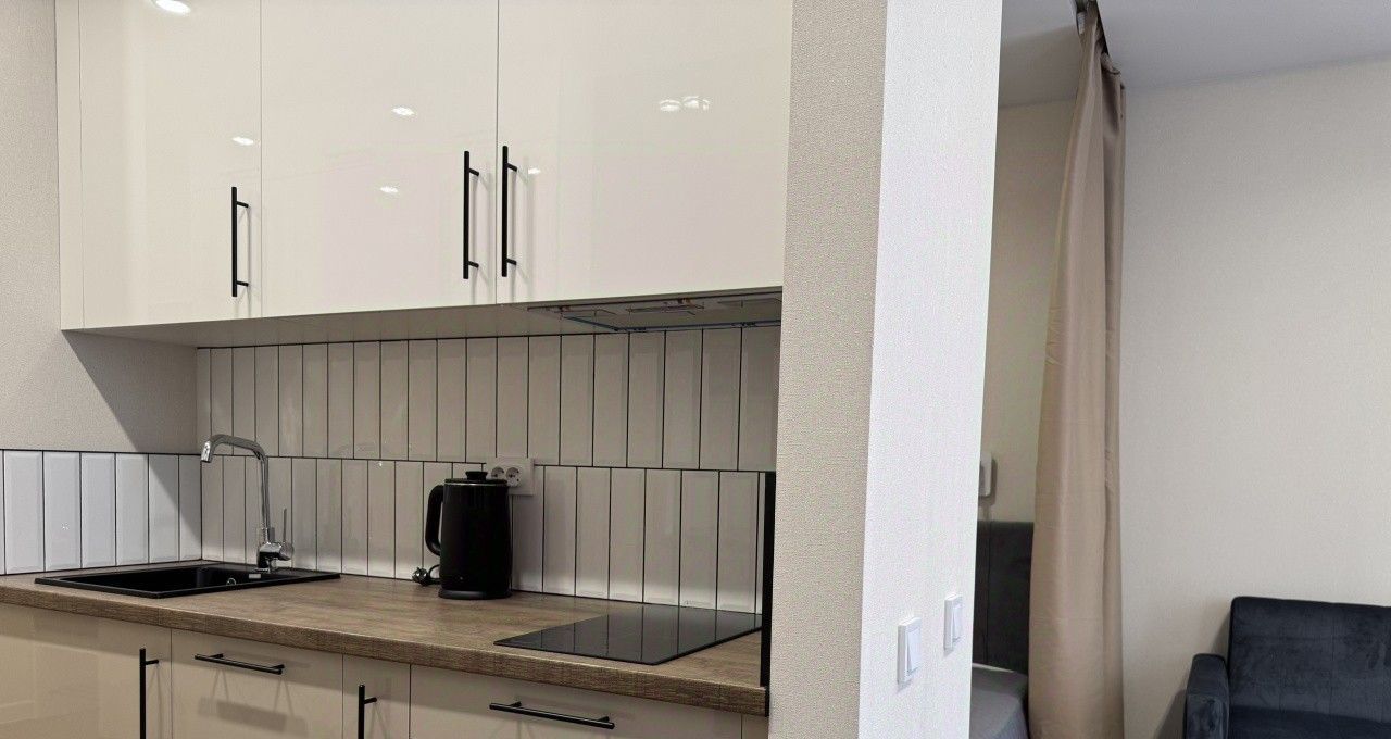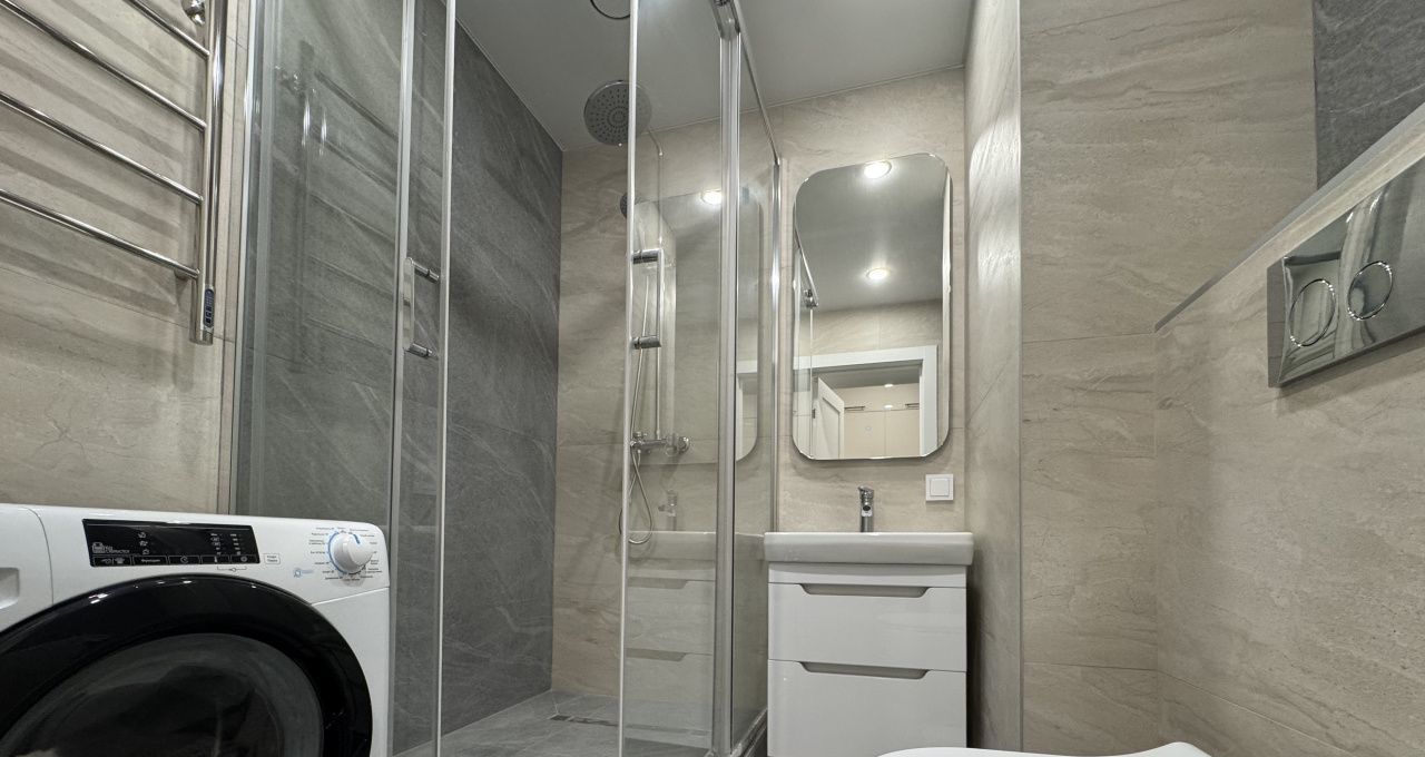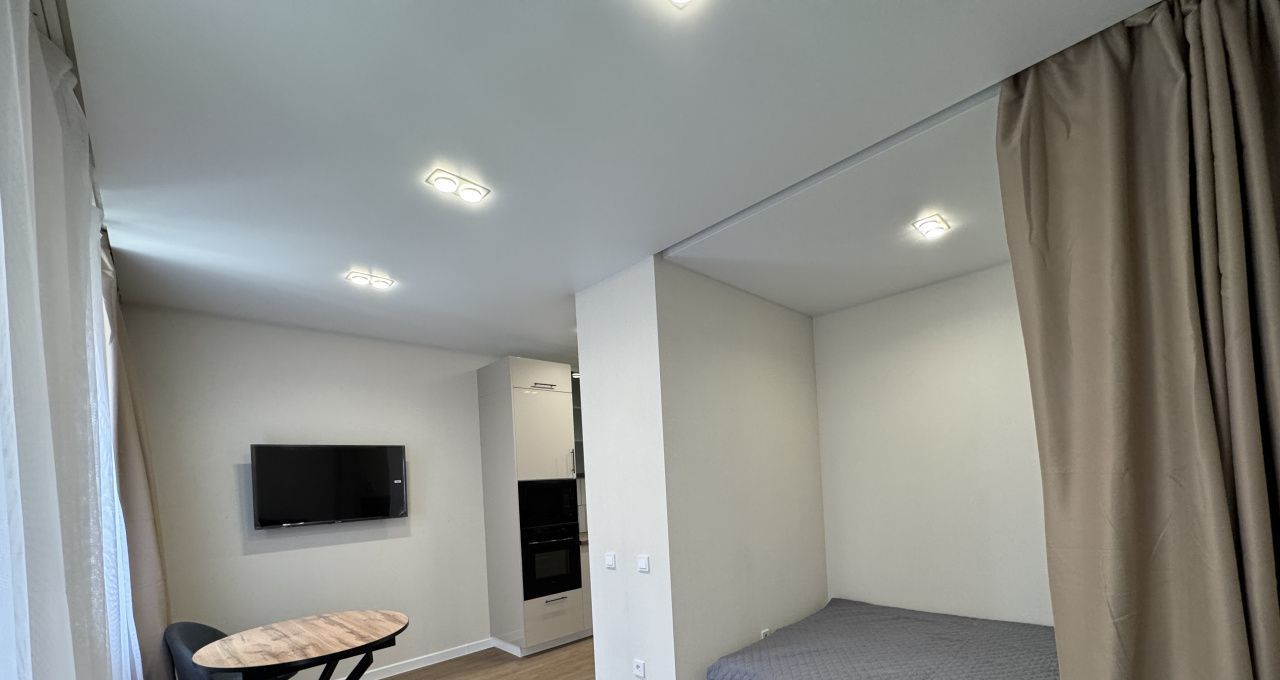 Квартира оборудована всем необходимым по дизайн -проекту: кухонная зона на две стороны, встроенный холодильник, микроволновая печь, посудомоечная машина, скрытые шкафы, удобный диван в гостиной, раскладывающейся для гостей, двуспальная кровать за красивыми гардинами, современно оборудованный санузел с душевой, вы видели лучше укомплектованную студию?