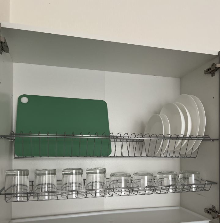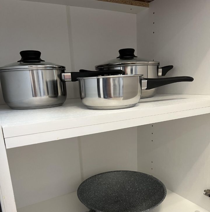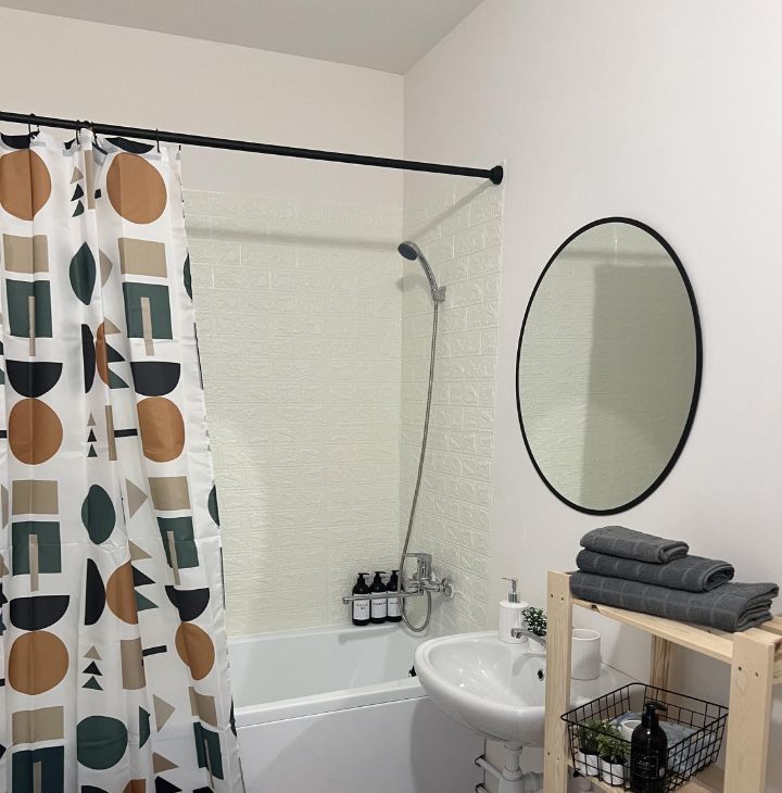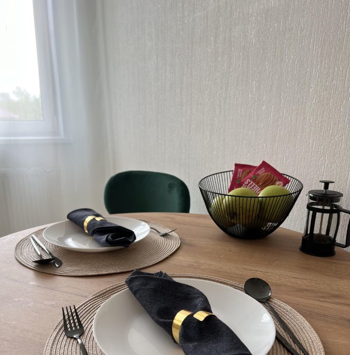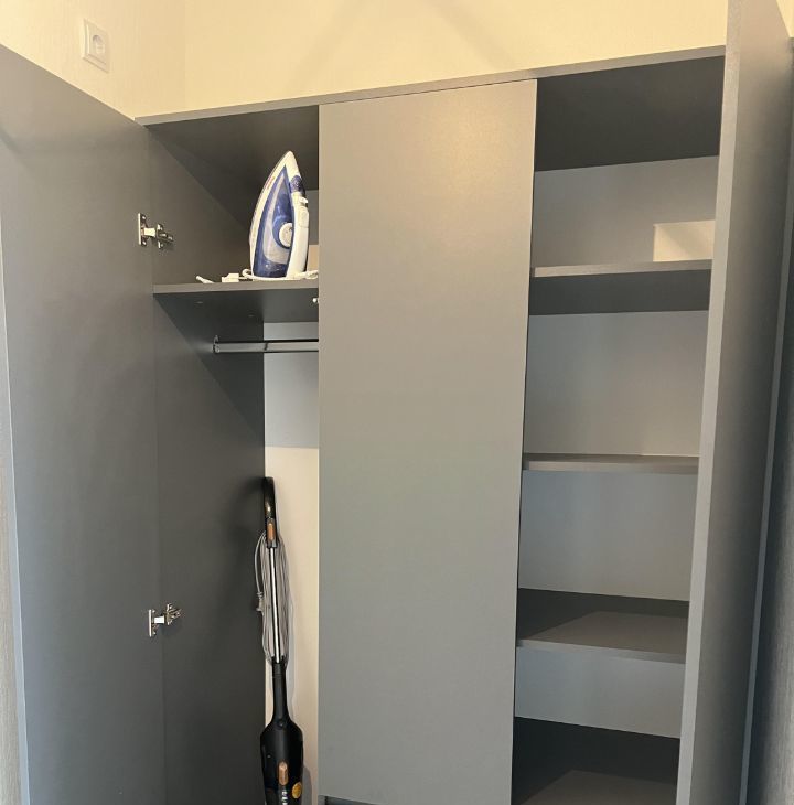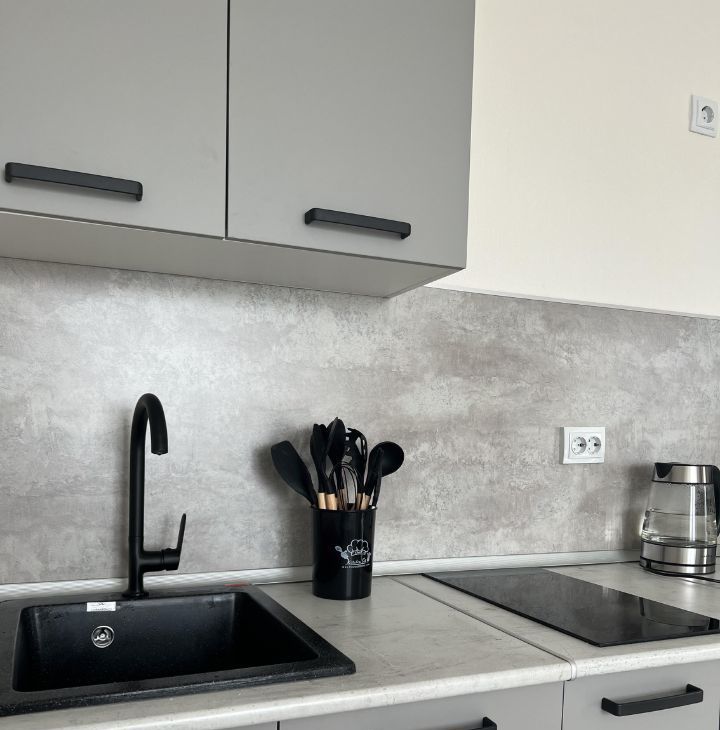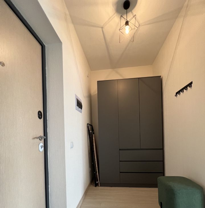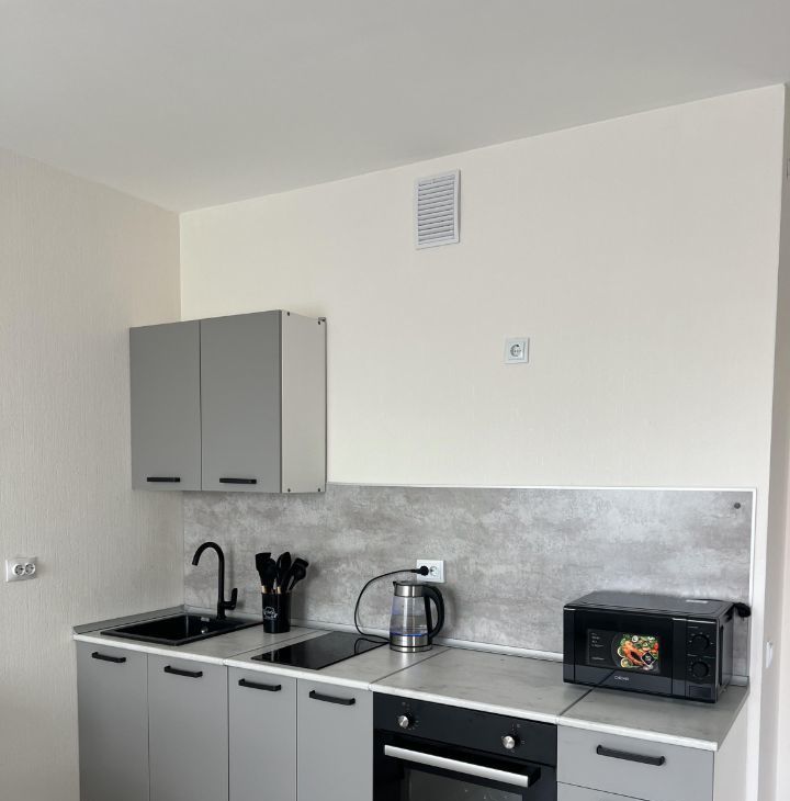 В квартире имеется все необходимое для комфортного проживания: кухонный гарнитур, холодильник, духовка, индукционная плита, чайник, микроволновка, раскладной диван, вместительный шкаф, пылесос, утюг, стиральная машина, сушилка для белья и гладильная доска.