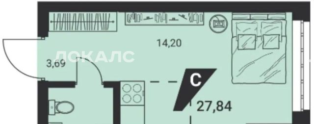 Студия Свердловская область, Екатеринбург ул. Академика Ландау, 16/2 (28.5 м²)