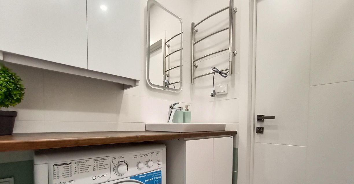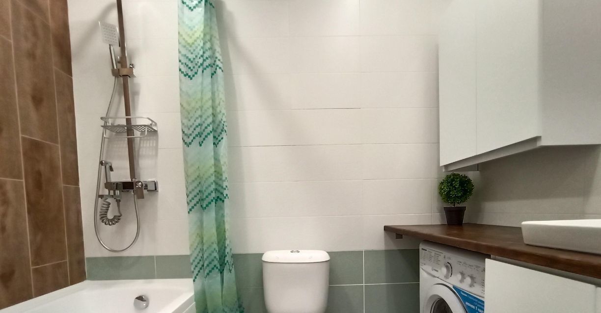 Санузел совмещенный, есть стиральная машина.