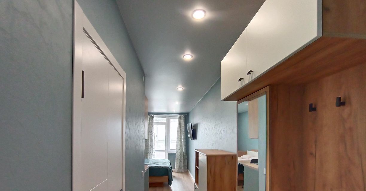 В спальной зоне очень мягкая кровать с подьемным механизмом, много места для хранения одежды, умный дом с голосовым ассистентом Алиса, а также датчики открытия дверей и окон.