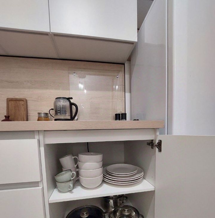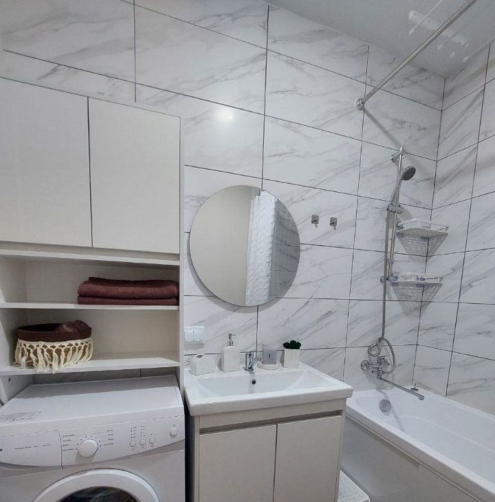• Оборудованы зоны хранения: вместительный шкаф в прихожей, шкафчики в ванной, гладильная доска, постельное.