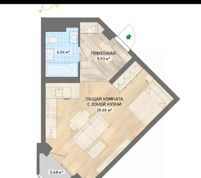 Студия Свердловская область, Екатеринбург ул. Павлодарская, 4/3 (35.0 м²)