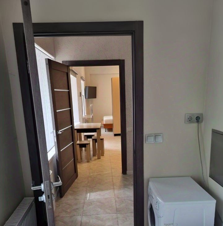 В квартире есть интернет, холодильник no frost, кондиционер, микроволновка, стиралка, плитка, двухспальная кровать с ортопедическим матрасом премиум класса Askona, небольшой диван, два стола, шкаф и все, что видите на фото.