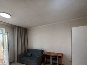 Студия продается с мебелью и техникой (электроплита Electrolux, стиральная машина Zanussi, небольшой телевизор Philips с приставкой и роутером, холодильник LG No Frost, микроволновка Горизонт). В коридоре два вместительных шкафа для хранения одежды и прочих вещей. Диван раскладной. Словом, все есть для жизни.