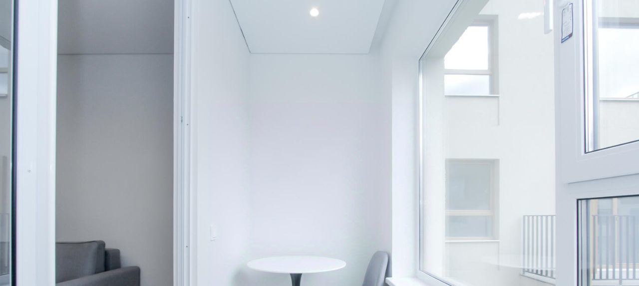 Эргономичная планировка пространства. Из зоны кухни есть выход на утепленную лоджию с панорамным видом во внутренний двор