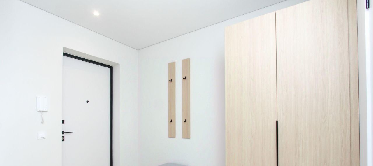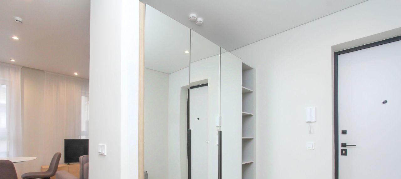 - два вместительных шкафа с зеркальными фасадами и мягкий пуф в прихожей
