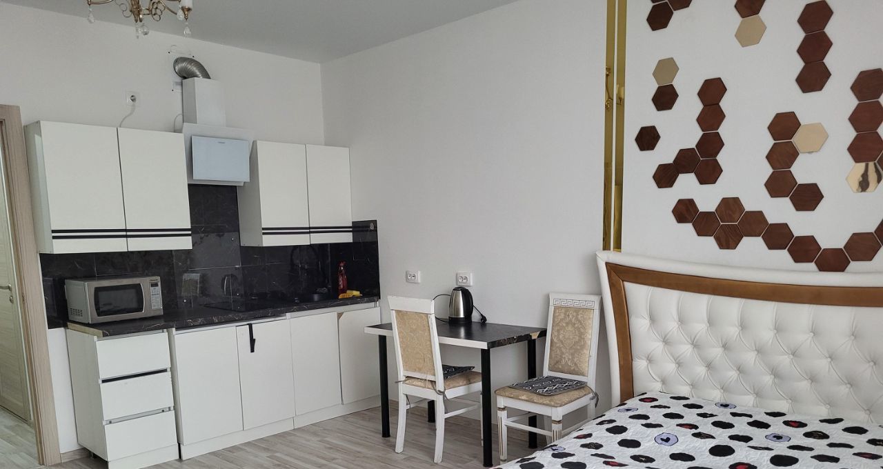 Сдаётся уютная студия в современном монолитном доме, построенном в 2021 году. Квартира расположена на 9 этаже 10-этажного здания. Общая площадь составляет 31 кв. м, жилая — 22 кв. м, кухня — 6 кв. м. Высота потолков — 2.6 метра. До станции метро "Уральская" можно добраться на автомобиле всего за 7 минут.