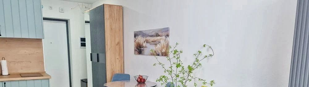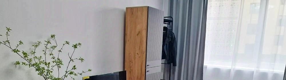 Меблирована всем необходимым. Для сна - двустальный диван-кровать, много мест для одежды и хранения, кухня полностью оборудована, смарт тв, стиральная машинка, есть гладильная доска, утюг и сушилка для белья.
