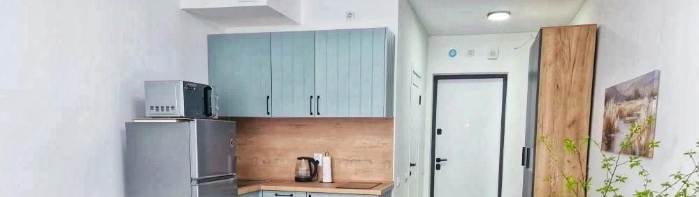 Квартира-студия в новом современном жилом комплексе сдаем на очень длительный срок. Еще никто не жил, вся мебель и техника новая.