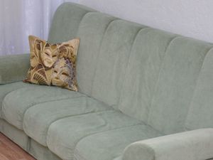 Есть все необходимое для жизни: кухонный гарнитур с плитой, холодильник, стиральная машина, диван, вместительный шкаф. Посуда и белье, чайник и утюг тоже предусмотрены. Можно заехать и жить.