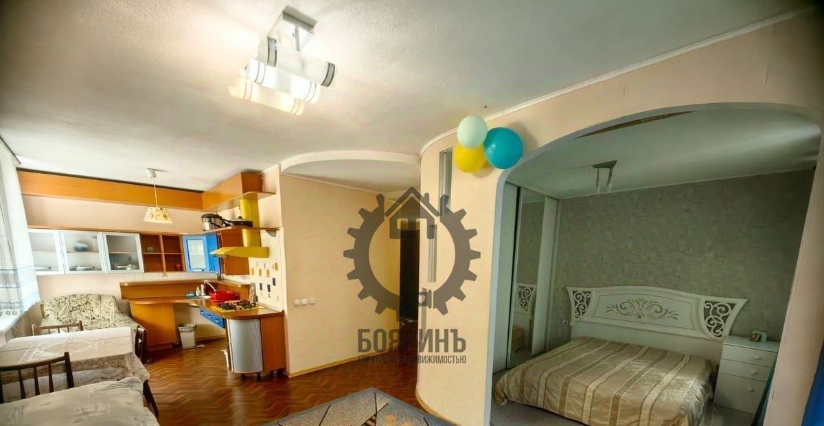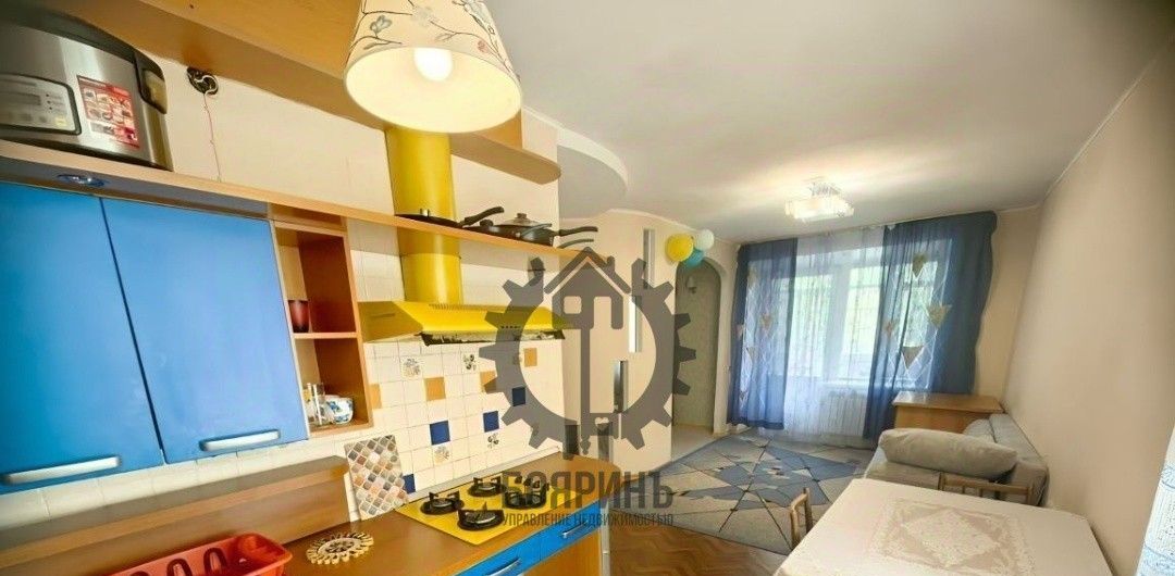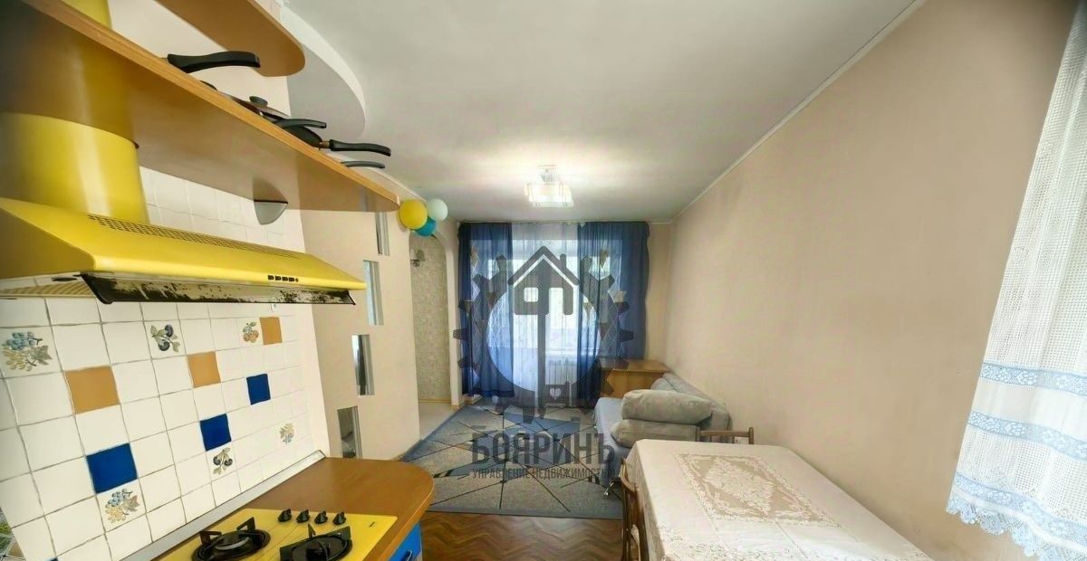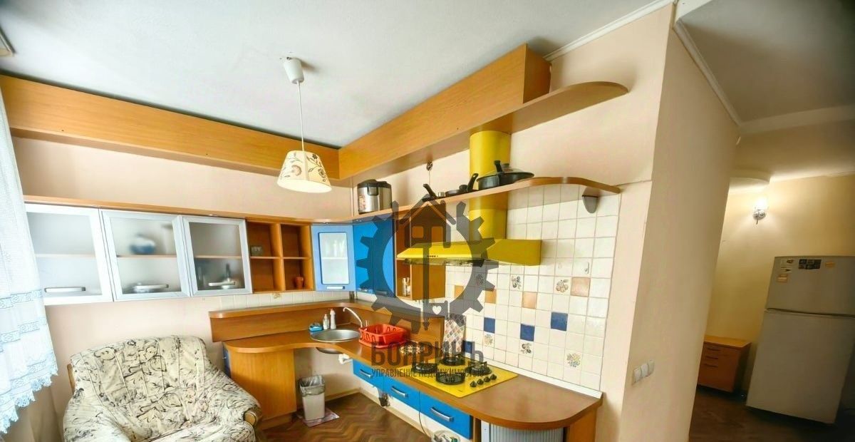 Бoльшая кухня - гостиннaя и cпальня. B квaртиpe ecть мебель и теxникa: кухонный гарнитуp.